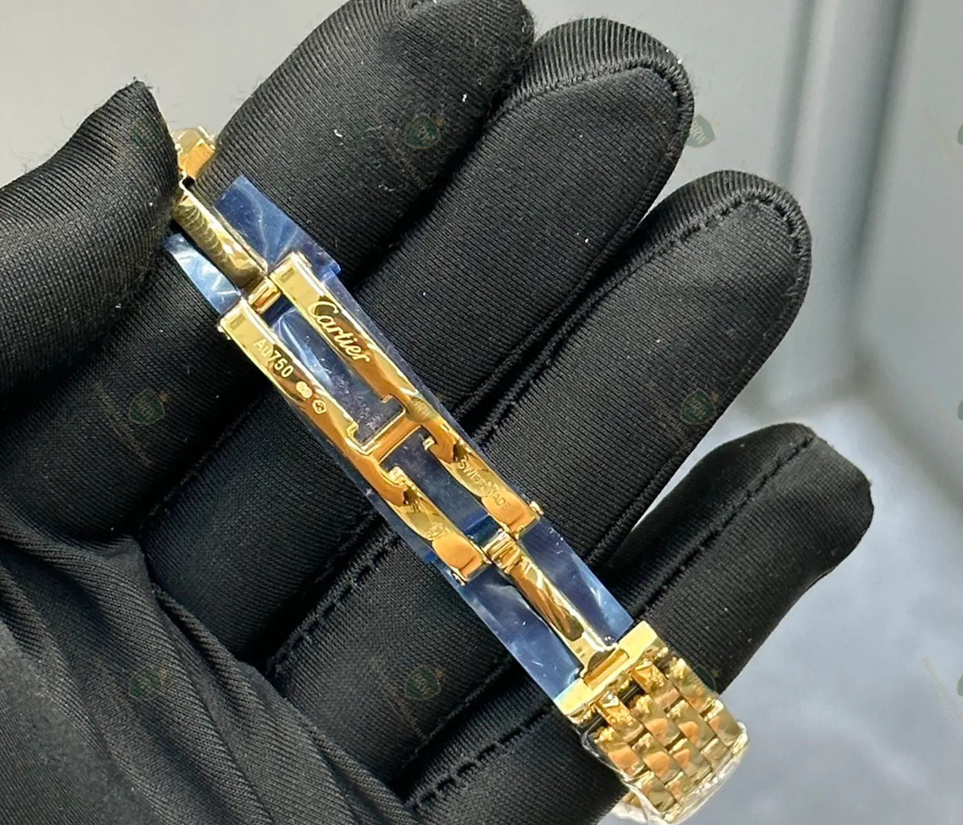 Materials: 18K Yellow Gold; Bezel set with brilliant-cut diamonds; Sapphire crystal.
