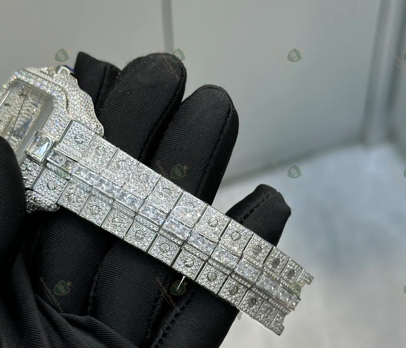 Be the first to review “Cartier Santos fully diamond encrusted custom model” Cancel reply