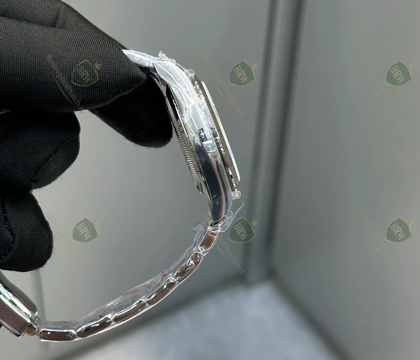 Materials: 18K White Gold (PVD/Wrapped); Sapphire crystal; Triple-link Oyster bracelet.