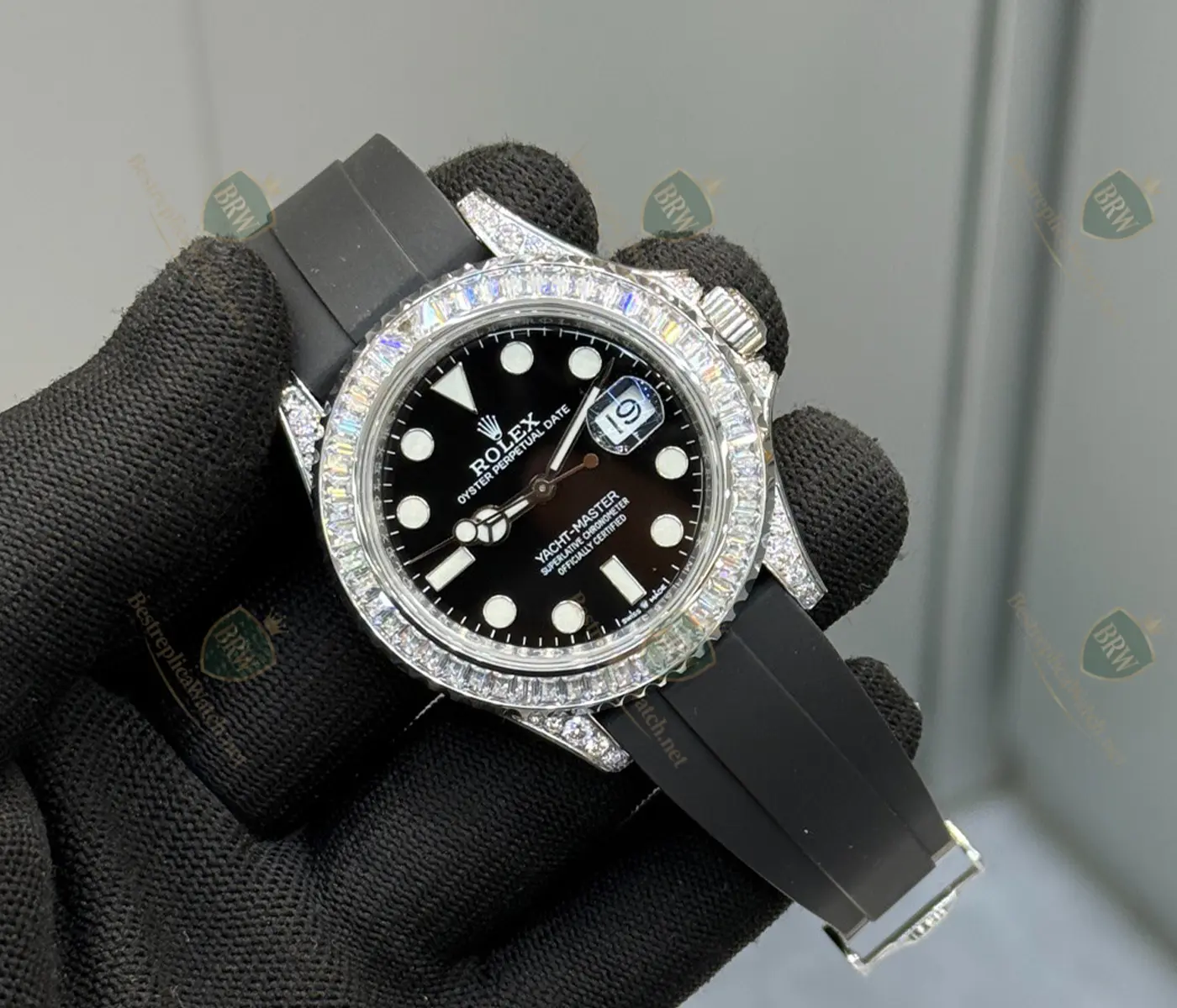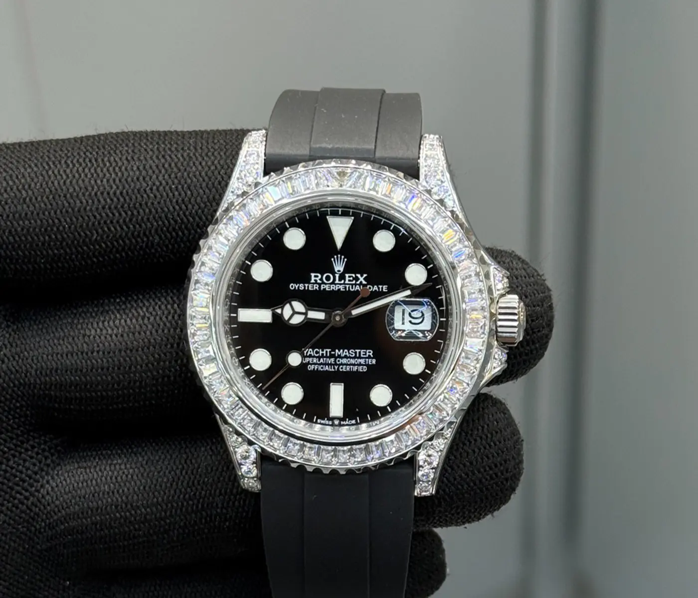 Materials: 18K White Gold; Bezel and lugs set with brilliant-cut diamonds; Oysterflex strap with White Gold Glidelock clasp.