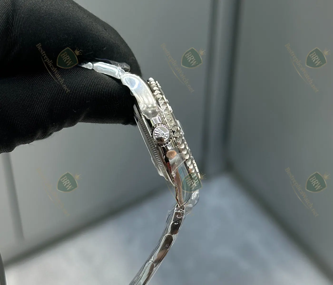 Materials: 904L Stainless Steel and 950 Platinum; Bidirectional rotatable bezel with raised numerals; Rolesium construction.